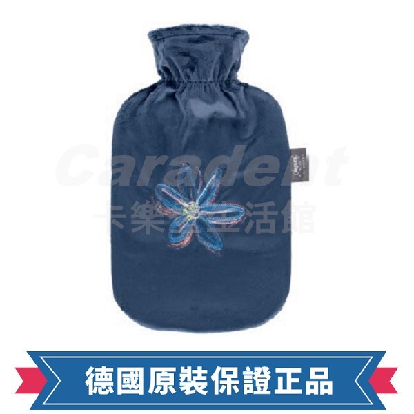 26年新款!深藍色 花朵刺繡絲絨毛套 熱水袋 冰枕 2.0L #67470 原價NT$1280 優惠價NT$750