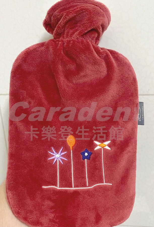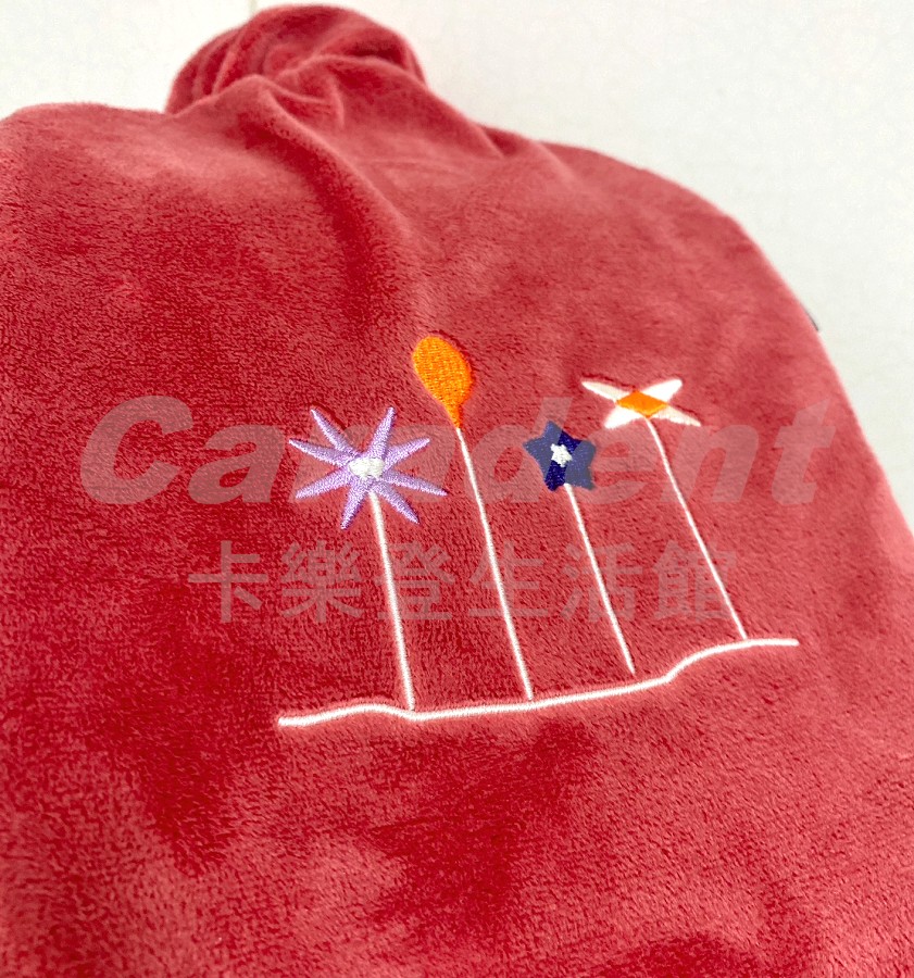 鐵鏽紅童趣圖案刺繡毛套 + 內含 2.0L 熱水袋